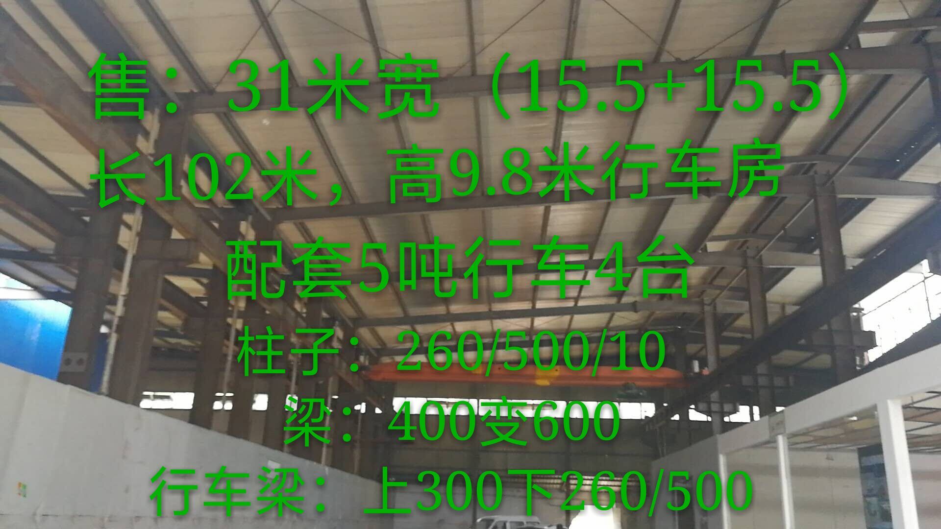 31米(5.5+15.5)1宽102米长9.8米高二手钢结构,配套5顿行车四台,柱子260-500-10,梁400变600
